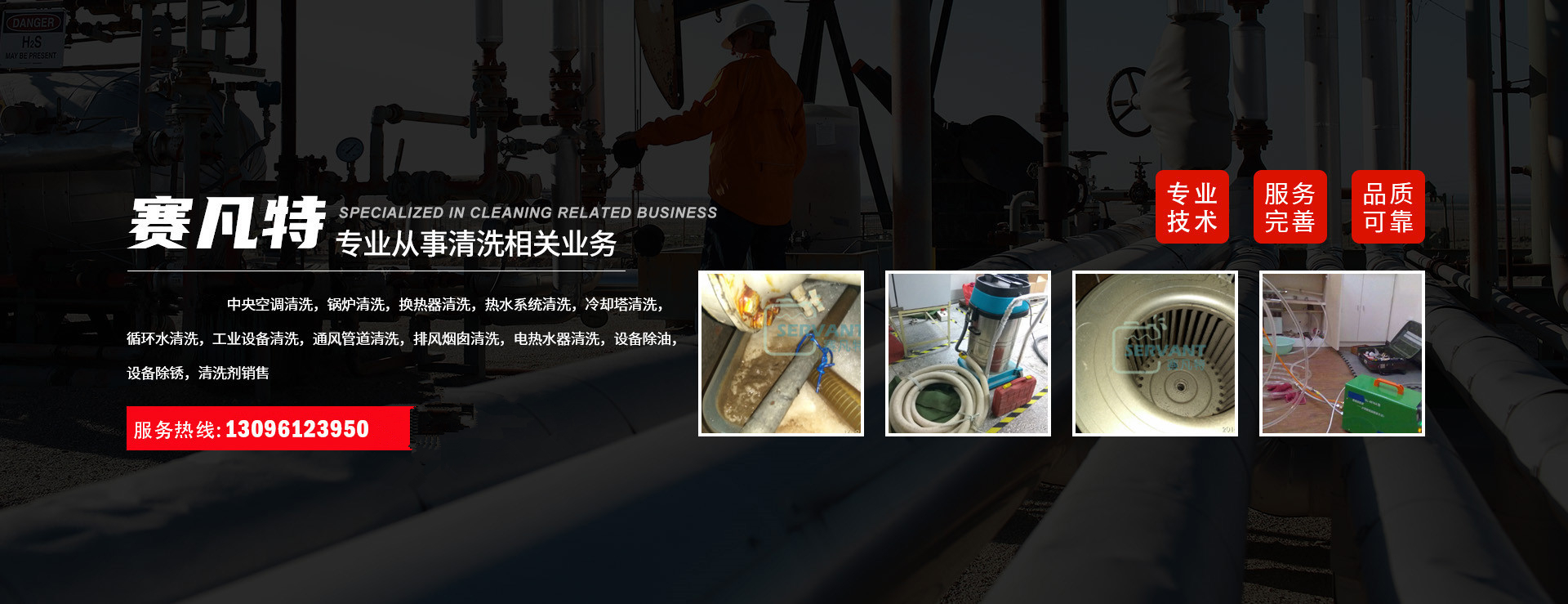 工業(yè)清洗工業(yè)制冷、供熱設(shè)備、各種儲(chǔ)罐、通水設(shè)備、鍋爐、循環(huán)水水處理與水質(zhì)管理,冷卻塔、風(fēng)管、工業(yè)排風(fēng)煙囪清洗消毒,凍庫制冷設(shè)備、風(fēng)